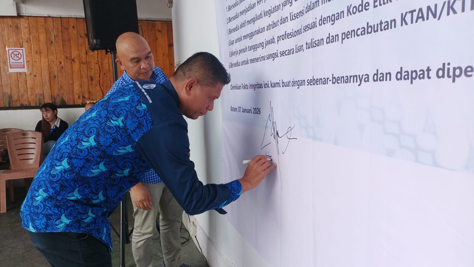 Ketua DPC HPI Kota Batam, Lazuardi Pare, menegaskan bahwa apel dan penandatanganan pakta integritas ini bagian dari langkah berbenah diri serta komitmen bersama untuk menjaga profesionalisme pramuwisata. “Masalah kemarin menjadi pengalaman terakhir buat kami dan kami berbenah diri. Jangan sampai ada lagi pemberitaan ke depannya anggota HPI disebut merebut tamu agent tanpa konfirmasi,” kata Lazuardi.